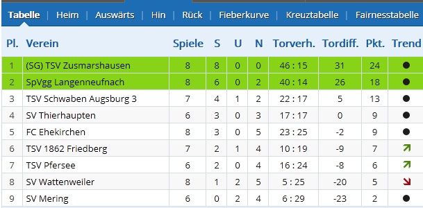 In der 2. Halbzeit kam man besser ins Spiel und man spielte jetzt endlich auch die Außenbahnen besser an. Mit dem besten Spielzug im Spiel konnte Lara Jaskolka das 2:0 erzielen, indem sie den Ball unhaltbar unter die Latte schoss. Friedberg verkürzte in der 73. Minute nochmal auf 1:2, aber im direkten Gegenzug stellte wiederum Lara Jaskolka den alten Abstand her. In der 2. Halbzeit versäumte es die Spg frühzeitig das Spiel zu entscheiden, man ließ wieder einmal zahlreiche Großchancen ungenutzt. Aber am Ende stand dann doch ein schwererkämpfter, aber verdienter Sieg, zu buche. Mit 24 Punkten aus 8 Spielen und 46:15 Toren belegt man ohne Punktverlust den 1. Tabellenplatz und hat 6 Punkte Vorsprung auf den Zweiten.