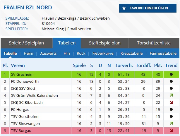 Nach einer harten Vorbereitung ging es dann gleich im ersten Spiel gegen den Tabellenletzten TSV Burgau, dieses richtungsweisende Spiel konnte knapp, aber verdient mit 2:1 gewonnen werden. Dies gab dem Team nochmals Aufschub und man gewann am Ostermontag gegen die SG Biberbach/Erlingen hochverdient mit 2:0. Aber nach 2 Siegen in Folge folgte dann die erste Niederlage, wieder musste man gegen den TSV Burgau antreten. Da man 2 Wochen vorher so gut gegen Burgau aussah, dachte man wohl, dass es wieder so leicht geht, aber man hatte sich wohl überschätzt und verlor verdient mit 0:2. Das Nachholspiel gegen den TSV Binswangen konnte man souverän mit 4:1 gewinnen. Aber diesen Sieg konnte man im nächsten Heimspiel nicht vergolden, obwohl man schon mit 2:0 in Führung lag, gab man das Spiel in der letzten Viertelstunde gegen die SG Glött/Aislingen noch mit 2:3 aus der Hand. In den darauffolgenden 4 Spielen konnte man dann aber den Klassenerhalt sichern, indem man sagenhafte 10 Punkte holte. Man gewann in Gersthofen mit 2:1, in Baiershofen mit 4:1 und in Binswangen mit 3:1 und erreichte ein sagenhaftes 2:2-Unentschieden gegen den späteren BOL-Aufsteiger SV Grasheim, wo man durch Franzi Behrendt den Ausgleich in der Nachspielzeit der Partie erzielen konnte. Im letzten Spiel der Saison ging es dann zum FC Donauwörth, wo man bei einem lauen Sommerkick mit 0:2 verlor. Am Ende sprang dann noch ein sagenhafter 6. Platz heraus, mit 26:31 Toren und 19 Punkten. Vor allem die Leistung nach der Winterpause konnte sich echt sehen lassen. Aus 10 Spielen holte man 6 Siege, bei einem Unentschieden und 3 Niederlagen. Mit 21:14 Toren und 19 Punkten war man eines der besten Teams nach der Winterpause. Dies konnte alles nur erreicht werden, weil das Team sehr eng zusammenstand und jeder für den anderen kämpfte. Beste Torjägerin im Team war Elisa Wandinger, die es in 9 Spielen auf 8 Tore brachte. Kathi Kawalla erzielte 5 Treffer, Bine Custodis und Resi Heichele je 3, Franzi Behrendt und Judy Kilian 2, sowie Marie Wekel und Kathi Zimmermann je 1 Treffer.