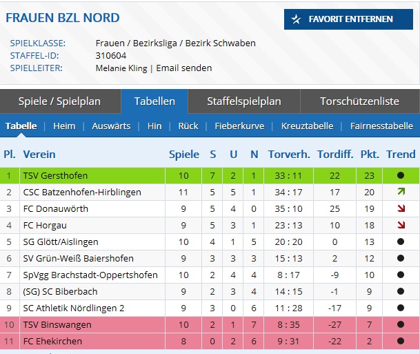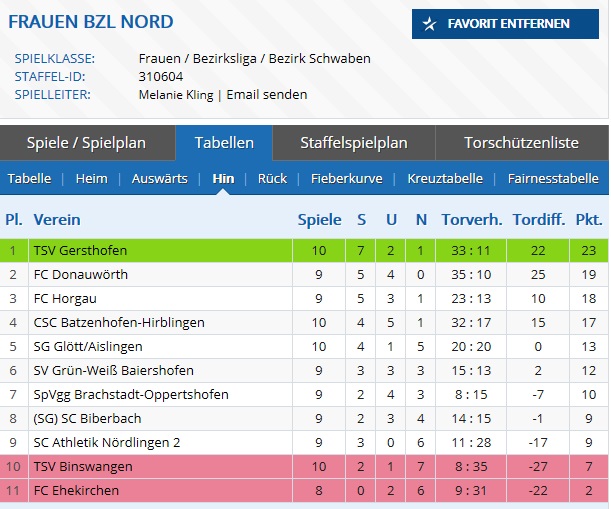 Nach der sehr guten Serie im Frühjahr, nahm sich das Trainerteam vor, das Team in der neuen Saison unter die besten 4 der Liga zu bringen. Und so ging man mit einer sehr langen und intensiven Vorbereitung in die neue Saison. Verstärkt mit den beiden B-Juniorinnen-Kreispokalsiegern und -Kreismeistern Sara Swoboda und Lara Ziegler ging es dann in die Vorbereitung, im Laufe der Vorrunde stieß dann auch noch die B-Juniorinnen-Spielerin Christiane Rank zum Team dazu. Leider verletzte sich die Torfrau Lara Ziegler bereits im ersten Testspiel so schwer an der Hand, dass sie die gesamte Hinrunde pausieren musste. Mitte September war es dann soweit und eine wohl sehr erfolgreiche Hinrunde sollte beginnen. Mit einen 3:0-Erfolg im ersten Spiel beim Aufsteiger Athletik Nördlingen II konnte man einen guten Auftakt verbuchen. Im ersten Heimspiel gewann man mit demselben Ergebnis gegen den TSV Binswangen, leider verletzte sich Spielertrainerin und Spielmacherin Kathrin Kawalla so schwer am Knie, dass auch sie die gesamte Vorrunde aussetzen musste. Im 3. Spiel setzte es dann die erste und bis jetzt einzige Niederlage. Man verlor klar und auch verdient mit 5:2 beim TSV Gersthofen. Wobei 5 schläfrige Minuten vor der Pause das ganze Spiel kosteten. 3 Gegentore, eine rote Karte (gegen Franzi Behrendt) und einen Foulelfmeter musste man in dieser Phase hinnehmen. Aber bemerkenswert war die 2.Halbzeit, die man komplett in Unterzahl bestreiten musste, aber durch ein Tor von Bine Custodis mit 1:0 für sich entscheiden konnte. Nun kamen 3 Spiele, die man allesamt unentschieden spielte, wo man aber wohl mind. 4 Punkte verschenkt hat. Beim 2:2 gegen Brachstadt lag man zur Halbzeit mit 2:0 in Führung, aber wieder einmal waren schläfrige 5 Minuten nach der Halbzeit schuld, dass man sich mit dem 2:2 begnügen musste. Beim 1:1 in Baiershofen verschlief man die komplette erste Halbzeit und drehte dann in der 2.Hälfte mächtig auf, aber es reichte nur zu diesem unentschieden. Beim 3:3 gegen den BOL-Absteiger Batzenhofen lag man zur Halbzeit mit 0:2 zurück, aber nach der Pause drehte das Team das Spiel und man lag mit 3:2 in Front, bis zur 93. Minute, wo Batzenhofen mit dem Schlusspfiff doch noch das Unentschieden retten konnte. Danach gab es noch 3 Siege, einen etwas glücklichen 2:0 Sieg in Biberbach, wo Torfrau Verena Knöpfle einen Sahnetag erwischte und alles hielt was auf ihren Kasten kam. Ein verdienter 3:0 Sieg gegen Aufsteiger Ehekirchen und zum Ende noch ein 4:2 Erfolg in Glött, gegen die das Team noch nie gewinnen konnte. Die letzten beiden Spiele vor der Winterpause (gegen Donauwörth und Athletik Nördlingen II) sind leider dem Wetter zum Opfer gefallen und werden erst 2016 gespielt. Zum Abschluss der Hinrunde belegt das Team einen hervorragenden 3.Platz, wobei das „Spiel um Platz 2“ (gegen Donauwörth) ins neue Jahr verlegt werden musste. Am Ende rangiert man zwar auf den 4. Platz, aber nur weil Batzenhofen bereits 2 Spiele mehr gespielt hat und 20 Punkte aufweisen kann. Man konnte in 9 Spielen 5 Siege und 3 Unentschieden einfahren. Nur eine Niederlage, gegen den TSV Gersthofen, die sich auch souverän die Herbstmeisterschaft sichern konnten, steht diesen Erfolgen gegenüber. Mit 23:13 Toren und 18 Punkten erreichte man wieder ein sehr gutes Ergebnis. Beste Torjägerin ist Bine Custodis mit 7 Treffern, gefolgt von Franzi Behrendt (5), Resi Heichele (4) und Elisa Wandinger (4, in 4 Spielen), sowie Judy Kilian (2).