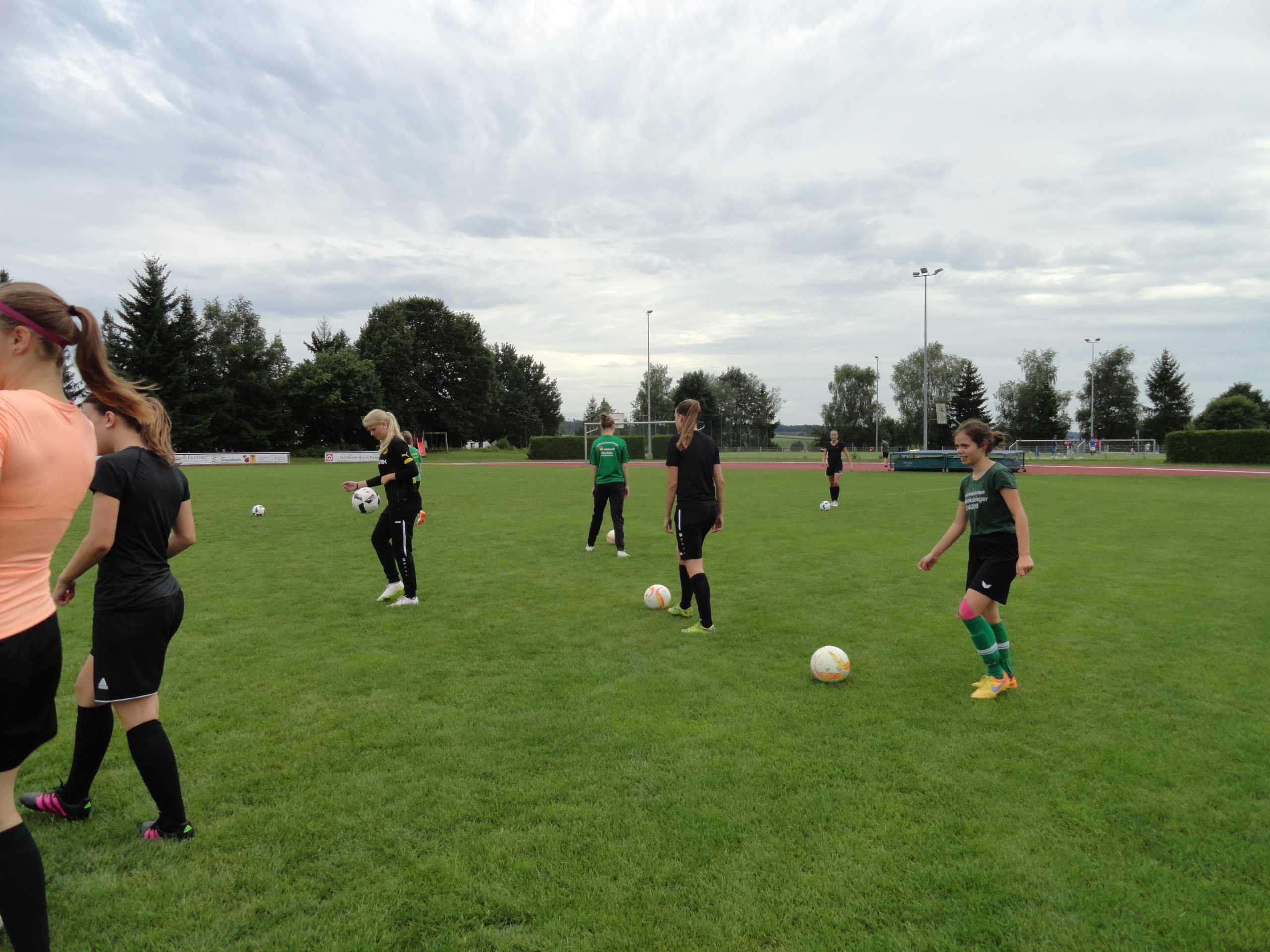 In dieser Woche sind auch unsere Frauen in die Saisonvorbereitung gestartet. Stand am Dienstag nur ein Auftaktbolz auf dem Programm, so ging es am heutigen Donnerstag schon mit etwas Technikübungen los, um die Füße wieder an den Ball zu gewöhnen, die nach 7 Wochen Pause etwas eingerostet waren. In den nächsten Wochen wird daran gefeilt, die beiden Teams auf die kommende Saison vorzubereiten und die vielen Neuen zu integrieren. In der Saison 2017/18 wird man nicht nur eine Frauenmannschaft in der Bezirksliga Nord an den Start bringen, sondern man stellt auch eine 2.Mannschaft im Freizeitliga Kleinfeldspielbetrieb (9er). Man möchte in der neuen Spielzeit die sehr enttäuschende Saison 2016/17 vergessen machen, als man mit dem 9.Platz unter den eigenen Erwartungen und Leistungsstand blieb. Diese letzte Saison war aber auch geprägt von vielen Verletzungen wichtiger Spielerinnen und der Ausfall zweier Leistungsträger durch Schwangerschaft zur Winterpause. Um im neuen Spieljahr besser abzuschneiden, konnte man 4 externe Neuzugängen (Alena Ebner (FC Königsbrunn); Eva Dirr (JFG Schmuttertal 07/SpVgg Westheim); Nadine Kühnle und Theresa Mieslinger (beide TSV Zusmarshausen)) bei den Kleeblätterinnen begrüßen, wobei die Eva, Nadine und Theresa letzte Saison schon als Gastspielerinnen in unserer B-Juniorinnenmannschaft gespielt haben und wir freuen uns, das sie sich beim FCHo wohlgefühlt haben und jetzt fest bei uns spielen. Ein fünfter externer Neuzugang muss erstmal noch wegen Schwangerschaft pausieren, wird aber wohl im Laufe des Jahren 2018 zum Team dazu stoßen. Dazu kommen noch 11 Mädels aus dem eigenen Nachwuchs, wobei 2 von ihnen nur in der Freizeitliga spielen können, aber für diese Mädels haben wir in der neuen Saison eine B-Juniorinnen Spielgemeinschaft mit dem SSV Anhausen und dem SV Gessertshausen gemeldet. Erstmal gehen die Frauenmannschaften mit 32 Spielerinnen in die neue Saison, aber im Laufe der Rückrunde könnten dann ja 3 pausierende wieder zum Team dazu stoßen. Aber vielleicht auch DU???