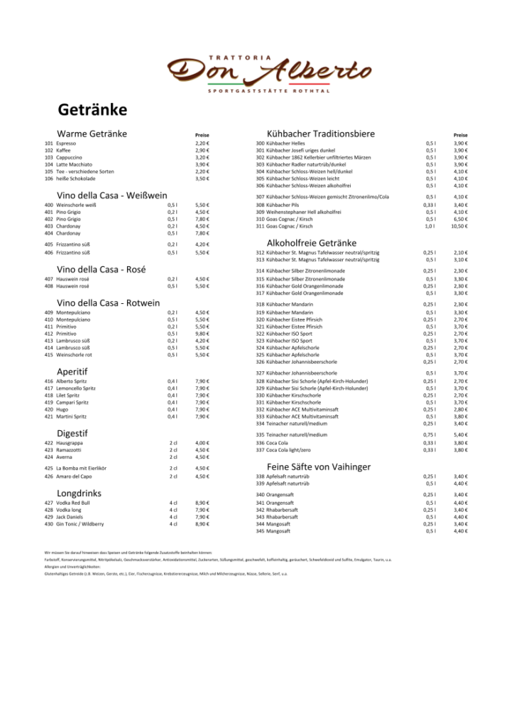 Herzlich willkommen in der Trattoria Don Alberto – Ihrer neuen Sportgaststätte in Horgau! Seit dem 02. Juli 2024 verwöhnt Sie unser Gastgeber Alberto mit köstlichen, selbstgemachten italienischen Speisen in einer einladenden Atmosphäre.
